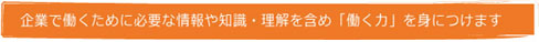 企業で働くために必要な情報や知識・理解を含め「働く力を」身につけます。