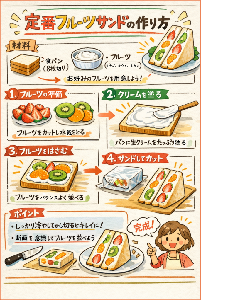 甘くて美味しいデザートサンドイッチは、ティータイムやおやつにぴったり。見た目も華やかで、特別な日のおもてなしにも喜ばれます。今回は、自宅で簡単に作れるデザートサンドイッチのレシピをご紹介します。
