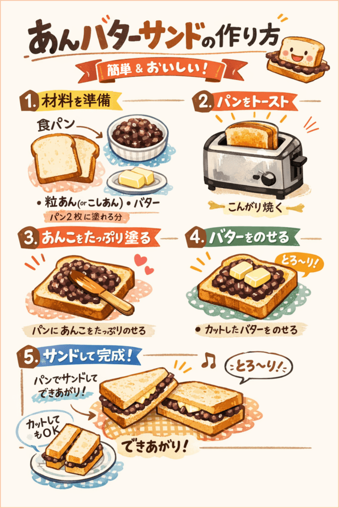 - つぶあんを均一に広げます。お好みでホイップクリームを加えると、さらにリッチな味わいになります。
