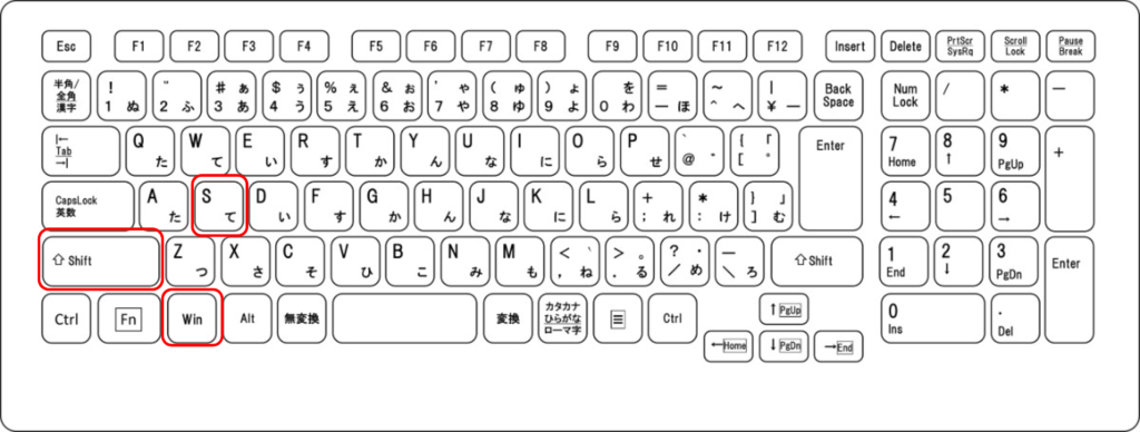 Windows + Shift + S(スクリーンショットを範囲指定で撮影)